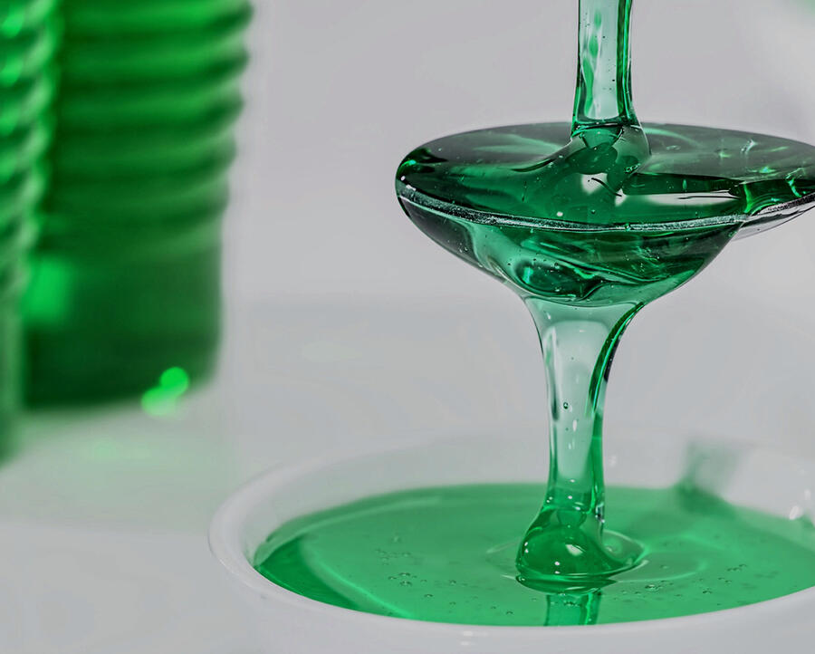 | Appearance | A clear, teal syrup. It smells strongly herbal, tastes bittersweet. and has the consistency of honey. |